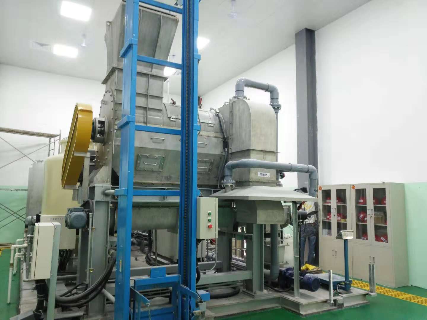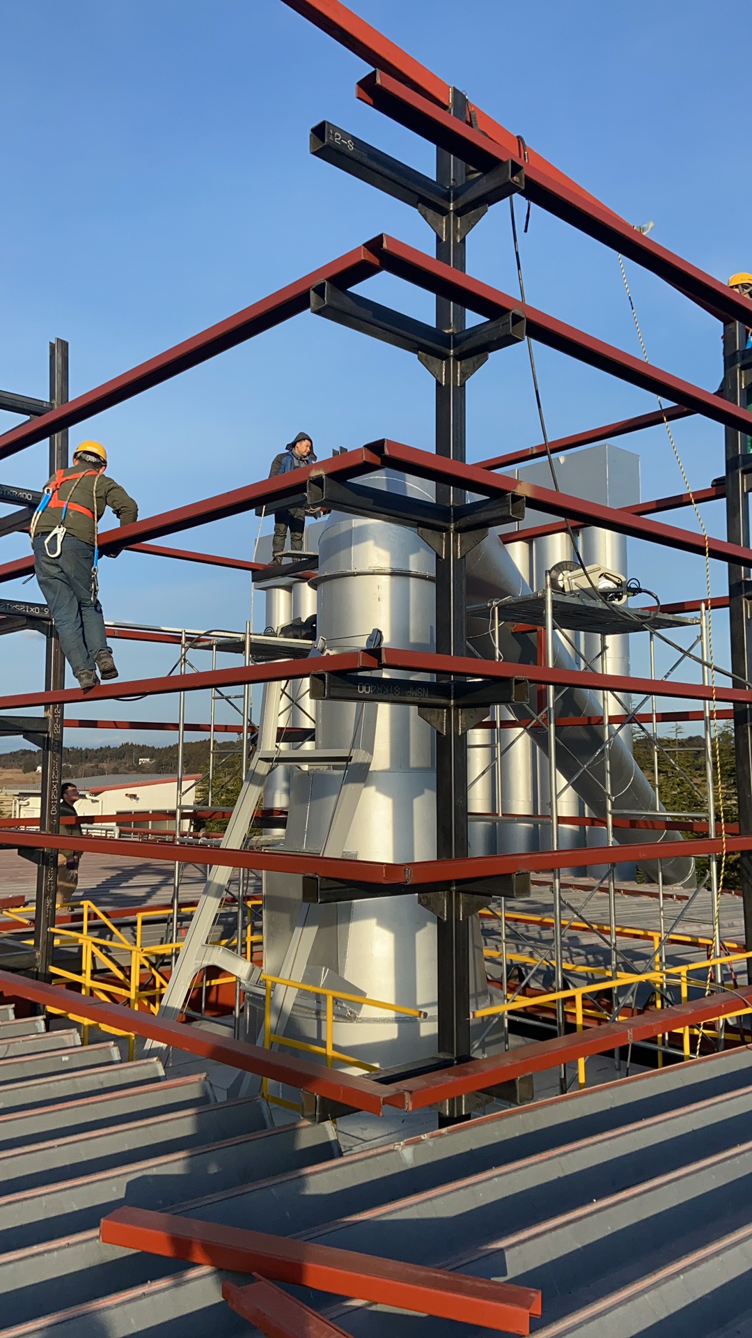 ①設備の据付工事 機械や機器などの重量物を決められた位置に安全に搬入し、高い精度で組み立て設置し、固定します。